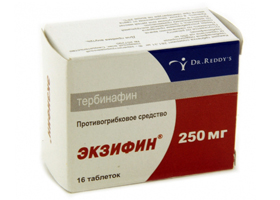 Эпидермофития стоп хорошо поддается лечению препаратом Экзифин (основное действующее вещество — тербинафин). Этот препарат доступен в различных формах: крем, таблетки и гель. При стертой форме заболевания сразу назначается Экзифин в виде крема. Гель используется при экссудации в остром и подостром периодах, так как он обладает подсушивающим эффектом.